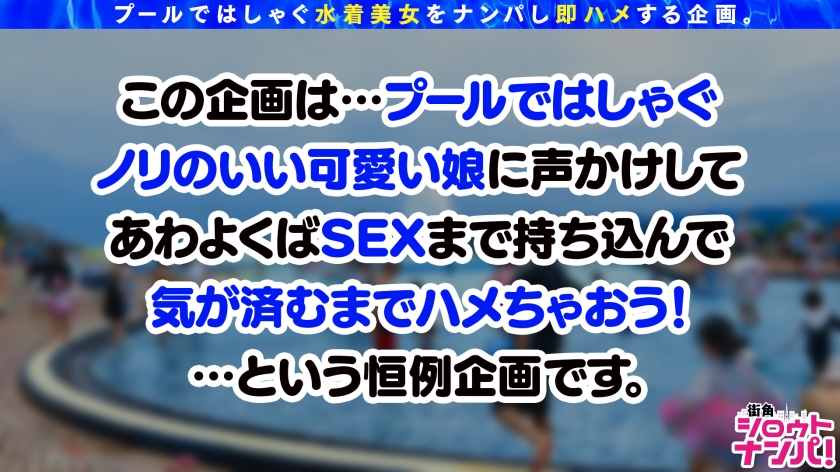 あらすじ:この企画はプールで見つけたビキニギャルをナンパして、心もカラダも開放的なセックスを愉しんじゃおうという企画。 某プールで見つけた今回のターゲットは世界を股にかけるGカップ美女【めいちゃん 25歳 CA】 そんな彼女と快楽のプールに溺れまくって忘れられない夏の思い出を作っちゃいます!