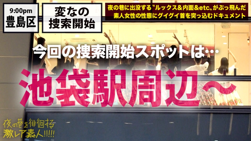 あらすじ:夜の巷に出没するルックス&内面&etcがぶっ飛んだ素人女性の性態にグイグイ首を突っ込むドキュメンタリー企画。今回は池袋で激レアさんを探します。誰かいないかと街中をウロウロしてたら駅近くでなんだか挙動不審な美人を発見!遠目から様子を確認していると、男性に声を掛けてコートの中をチラチラ見せている彼女。何かを交渉したのかそのままホテルに入っていきました。ホテルから出てくるのを待って彼女が一人になったところで声を掛けて撮影交渉してみると快く引き受けてくれました。遠目から撮影しているとまた新しく男性の逆ナンに成功したようでホテルに入っていきました。終わったところで改めてお話を聞いてみると…付き合ってる男性の命令で知らない男性に声を掛けてセックスしている様を動画に撮っているらしく撮りたてホヤホヤの動画を見せて貰うと…