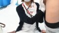 キワキワ施術で勃起したパンパン亀頭にワレ目押し当て布越し挿入誘発する天国メンエス 藤井蘭々
