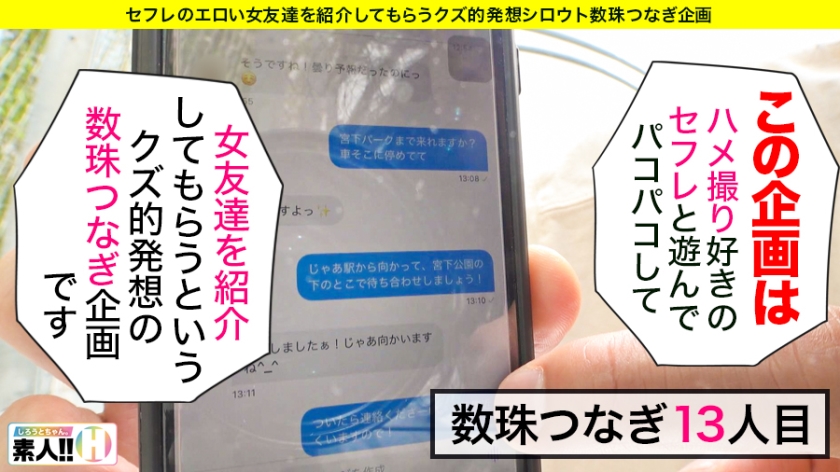 素人娘と遊んでパコってHな友達も紹介してもらう企画。今回のお友達は北関東に住んでいる地元が大好きで武○咲さんに似ているとよく言われると言うなっちゃんは面白いことが大好きだけど性格はネガティブなんだって。現在彼氏は1年半位いないんだって。そんななっちゃんの好きなタイプは見た目が清潔で積極的によくしゃべる人が好みで性感帯は耳、乳首、アソコなんだけど全身性感帯だそうです。筋肉フェチななっちゃんは割れた腹筋をさわり、おっぱいをさわられながら舌を出しながら大人しいDキス。勃起しているチ○ポをさわりながら笑顔になるなっちゃんのマ○コをさわると「恥ずかしい~」と大人しくなるなっちゃんの勃起したクリをさわると指をくわえ、甘えながら「もっとして~っ」とねだってきたので激クンニすると「気持ちぃ、あっ、イクッ、イクッ・・・」と指マンすると昇天寸前!!大好きなチ○ポを竿から亀頭にかけて舐めおろし口奥まで唾をたらしながら頬張りバックから激ピストンすると「気持ちぃよ~、うっうっチ○コ~すご~い」と声をあげるなっちゃんに電マをクリにあてながらさらに激ピストンされると「イクッ、イクッ、ダメッ、あ~きもっ」とバックで刺され、騎乗位で上下前後に腰を動かしたらカラダが紅潮してきたなっちゃんは「突いてる、突いてる、うっ、ウッ、すごい、気持ちぃ~、好き、すき、イクッ」と性感帯を舐められると「恥ずかしい、イヤらしい…」と言うなっちゃんの首筋にザー汁が飛び散りました。長身で声の小さい全身性感帯で何度も激イキするなっちゃんはどんなゆめかわな友達を紹介してくれました。次回をお楽しみに!!